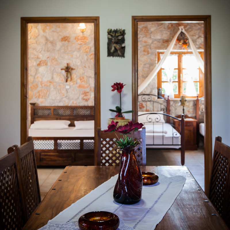 Η Βίλα είναι 60m2 και διαθέτει δύο υπνοδωμάτια, μπάνιο, σαλόνι/τραπεζαρία/κουζίνα με τζάκι, τα ψηλοτάβανα και παραδοσιακά έπιπλα δημιουργούν μία χαλαρωτική και ρομαντική ατμόσφαιρα.